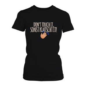 Don T Touch It Sonst Klatscht It Damen T Shirt Spruch Fass Mich Nicht An Emo Ji Ebay